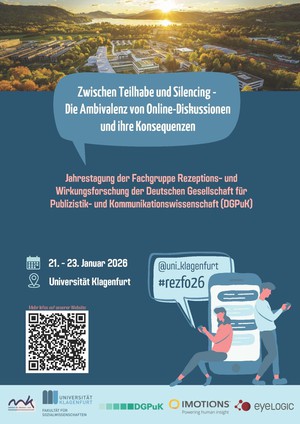 Freitag endete die diesjährige Jahrestagung der DGPuK- Fachgruppe Rezeptions- und Wirkungsforschung am Institut für Medien- und Kommunikationswissenschaften der Universität Klagenfurt, auf der das IJK mit zwei Vorträgen vertreten war: Nico Spreen und Christoph Klimmt beleuchteten unter der Überschrift "Wenn Menschen die Misinformation glauben wollen: Erweiterung der 'Myth-Busting'-Strategie vor dem Hintergrund von Motivated Reasoning" eine alternative Strategie zum Umgang mit Misinformationen, während es im Vortrag "Intendierte Wirkungen genderinklusiver Sprache in Nachrichtentexten: Hinweise auf Randbedingungen aus einer Replikation" um die Gegenüberstellung von Befunden aus zwei Replikationsstudien und deren Diskussion ging. An diesem Beitrag waren Charlotte Schrimpff, Anja Dittrich, Sophie Bruns, Annabell Halfmann, Teresa Naab, Hannah Schmid-Petri und Christoph Klimmt beteiligt.