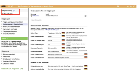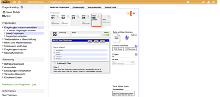 Welche Seite eure letzte ist, könnt ihr unter Fragebogen zusammenstellen links sehen. Und natürlich dann speichern nicht vergessen (oben rechts).