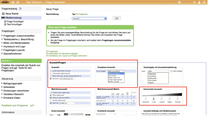 Hier habt ihr nun die Möglichkeit euch für einen passenden Fragetypen zu entscheiden.