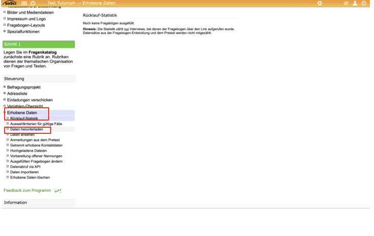 Die Online-Statistik bietet euch schon während der Feldphase einen Überblick über die bisher gesammelten Befragungsdaten.